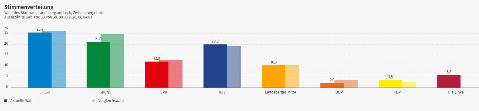 vielen Dank für Ihre Wählerstimme und Unterstützung. Die Landsberger Mitte ist mit einem sehr gutem Ergebnis 10,3 % bestätigt worden und wird zukünftig mit 3 Sitzen im Landsberger Stadtrat vertreten sein.
