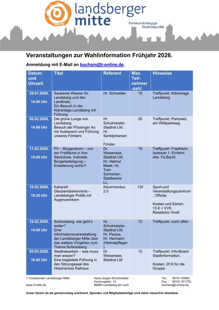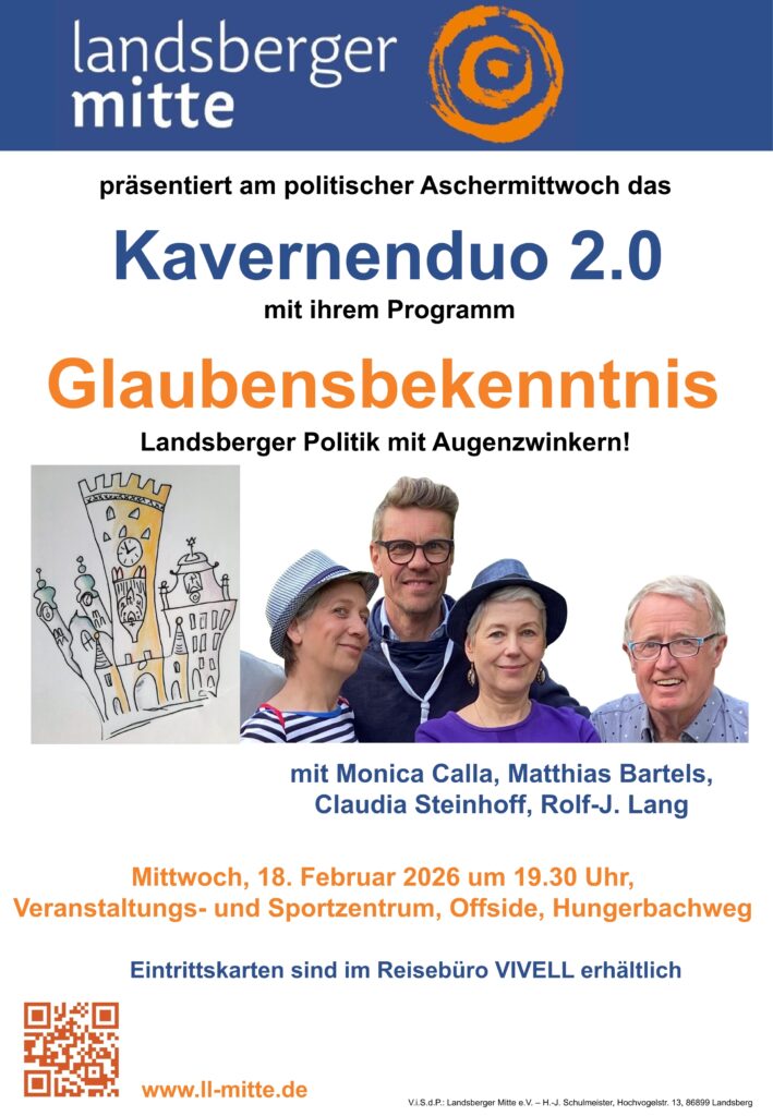 Zwei Tage nachdem die Landsberger Muske(LL)tiere vom Kavernenduo 2.0 alle ihre Zweifel an den Obrigkeiten von Stadt und Landkreis Landsberger lautstark werden herausposaunt haben, rufen sie nach Asche auf ihrem Haupt. Scheinbar geläutert glauben sie gebetsmühlenartig für ihre heimatlichen Sphären wieder an rosige Zeiten. Ob das von ihnen angekündigte ‚Glaubensbekenntnis‘ jedoch ein Lobgesang auf die Lechstadt und den weiteren Landsberger Hoheitsbereich werden wird, ist eher kaum zu glauben. Aber Glaube, so die Spötter, soll ja bekanntlich auch Krachen-, Schloss- und Hintersberge versetzen. Aus Sicht der Kabarettisten ist diese Messe jedenfalls noch nicht gelesen und verlangt nach einem klaren ‚Glaubensbekenntnis‘!